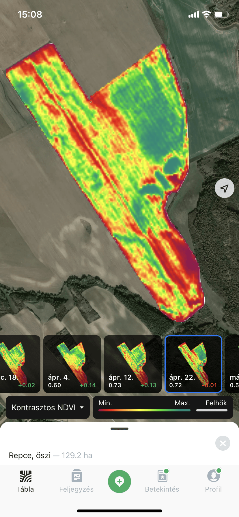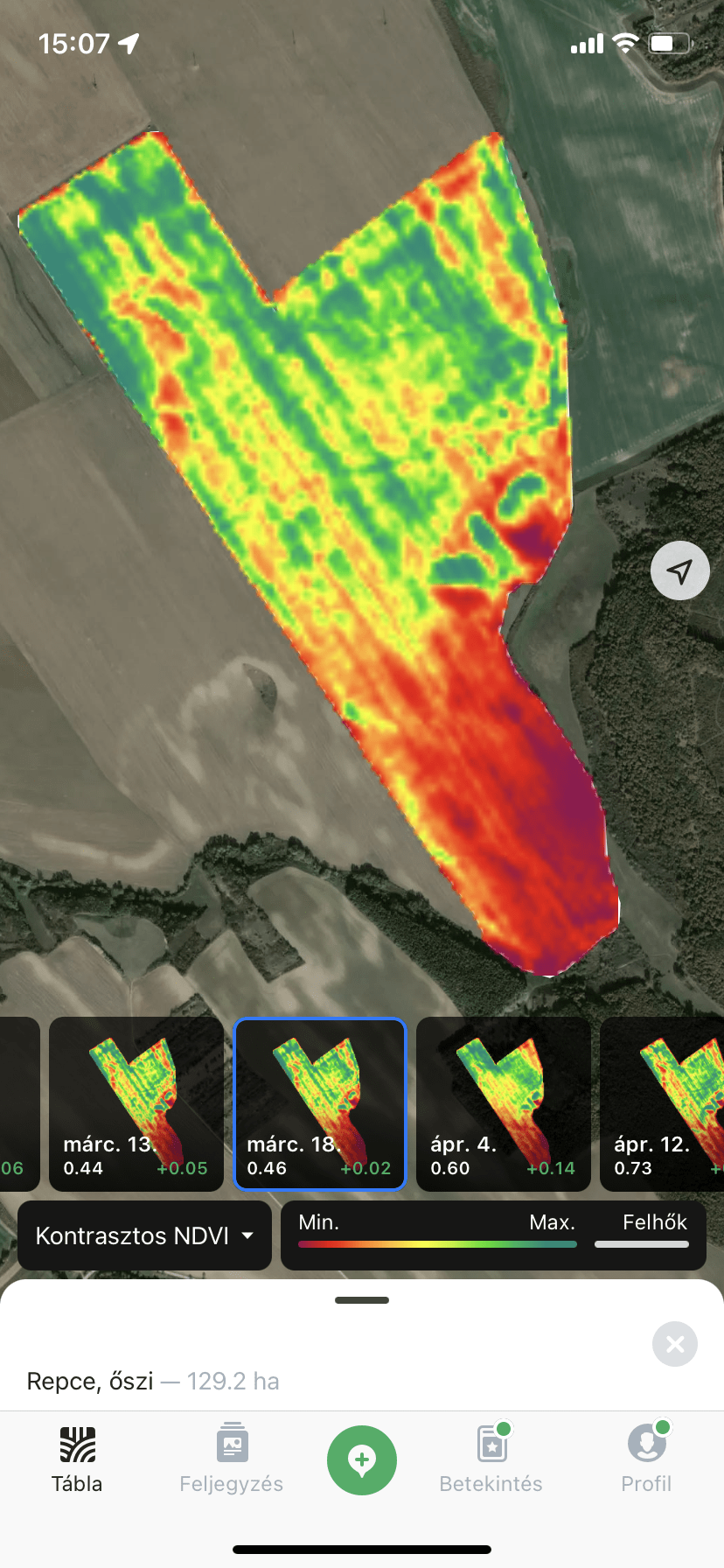 Ha nincs megfelelő mennyiségű hozamadat, akkor NDVI képeket is felhasználunk a zónák kialakításához. Azonban nagyon fontos, hogy megfelelő fenofázisban készült képekkel dolgozunk.